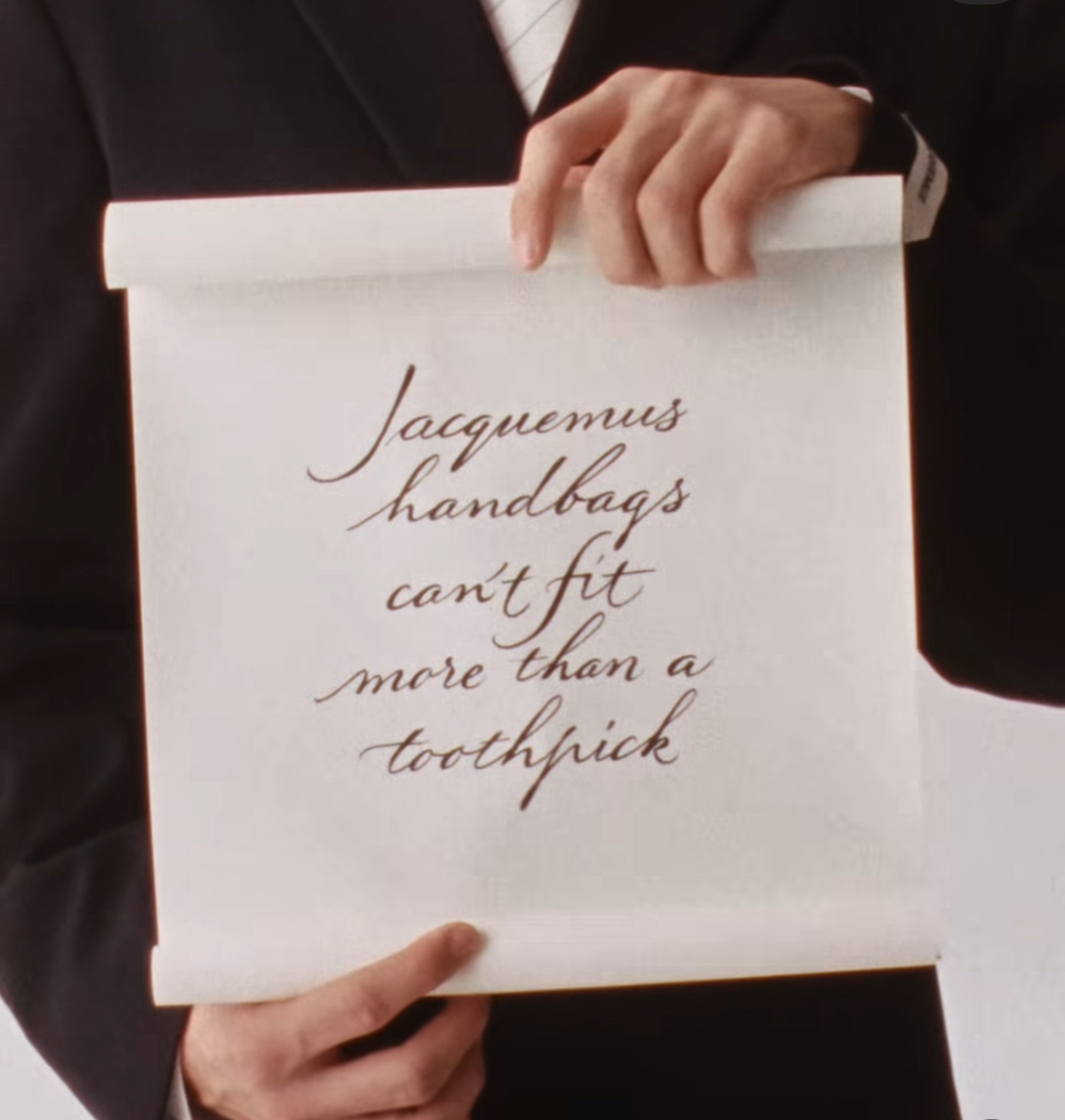 Umesto grandioznih scena i složenih narativa, kampanja se oslanja na minimalističku estetiku; bela pozadina, jednostavna scenografija, modeli koji se smireno suočavaju sa poznatim klišeima. Na primer, klasična primedba da u Jacquemus torbe „ne može da stane ništa više od čačkalice“, u video klipu se obija kada model izvadi neočekivano veliki broj čačkalica.
